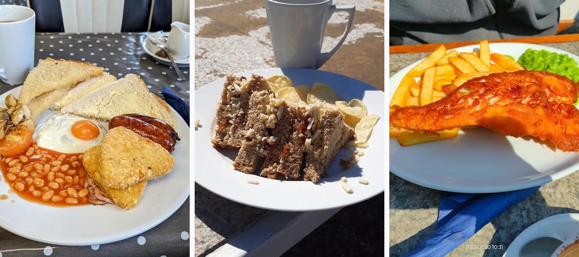 Definitely try the fish and chips, described by many as the best around. The breakfast options like the Big Breakfast and Vegetarian Breakfast also receive rave reviews. Don't overlook their delicious bacon sandwiches!